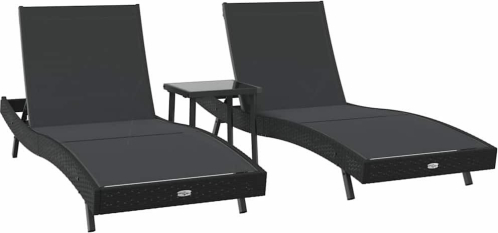 vidaXL Leżaki 3 pcs Czarny 40 x 40 x 40.5 cm Polirattan