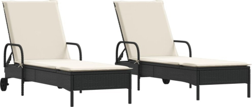 vidaXL Leżaki z poduszkami, 2 szt., czarne, polirattan