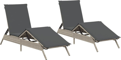 vidaXL Leżaki z poduszkami, 2 szt., jasnoszare, polirattan