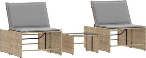 vidaXL Leżaki ze stolikiem, 2 szt., beżowe, polirattan