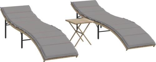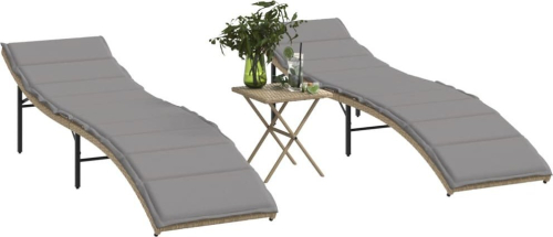 vidaXL Leżaki ze stolikiem, 2 szt., beżowe, polirattan