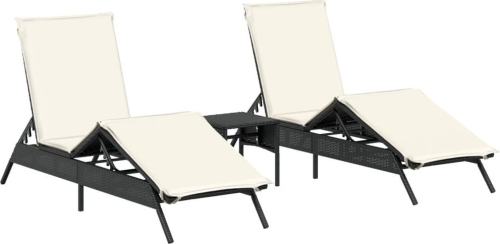 vidaXL Leżaki ze stolikiem, 2 szt., czarne, polirattan