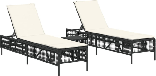 vidaXL Leżaki ze stolikiem, 2 szt., czarne, polirattan