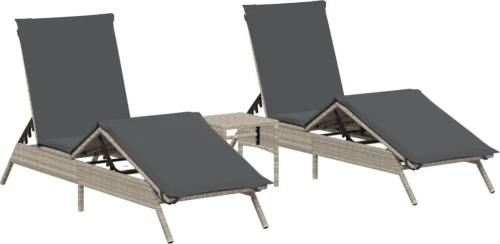 vidaXL Leżaki ze stolikiem, 2 szt., jasnoszare, polirattan