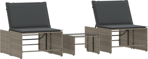 vidaXL Leżaki ze stolikiem, 2 szt., szare, polirattan