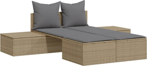 vidaXL Podwójna leżanka z poduszkami, beżowa, polirattan