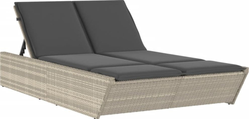 vidaXL Podwójna leżanka z poduszkami, jasnoszara, polirattan