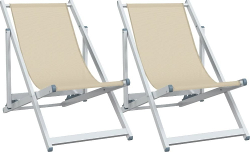 vidaXL Składane krzesła plażowe, 2 szt, kremowe, aluminium i textilene