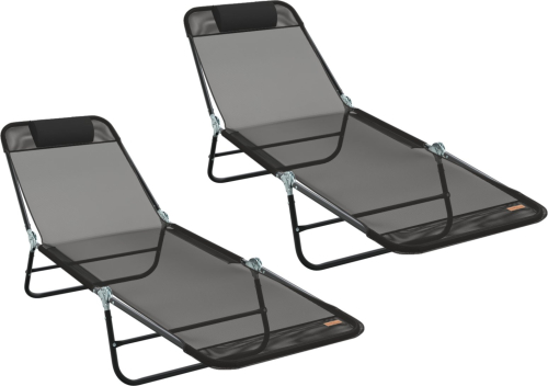 vidaXL Składane Leżaki 2 szt. z Oparciem Czarny Textilene