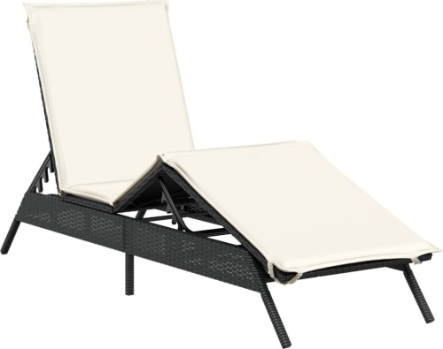 vidaXL vidaXL Leżak z poduszką, czarny, polirattan