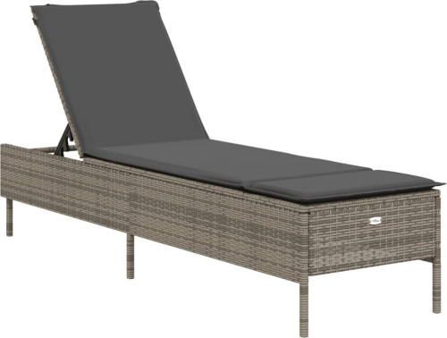 vidaXL vidaXL Leżak z poduszką, szary, polirattan