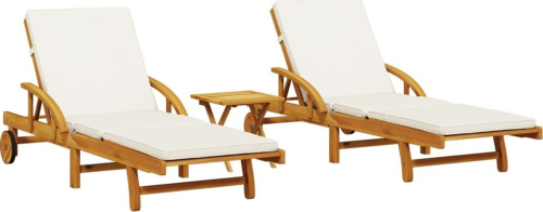 vidaXL vidaXL Leżaki, 2 szt., ze stolikiem, lite drewno akacjowe