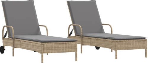 vidaXL vidaXL Leżaki z poduszkami, 2 szt., beżowe, polirattan