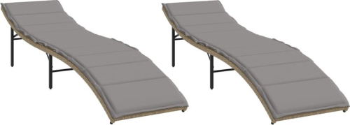 vidaXL vidaXL Leżaki z poduszkami, 2 szt., beżowe, polirattan