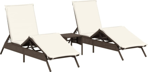 vidaXL vidaXL Leżaki ze stolikiem, 2 szt., brązowe, polirattan