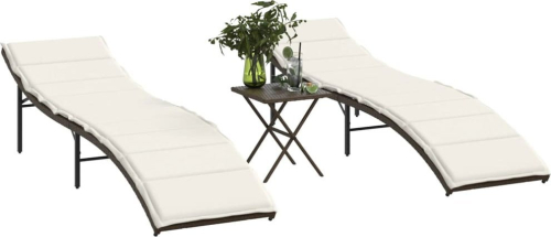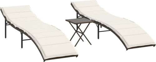 vidaXL vidaXL Leżaki ze stolikiem, 2 szt., brązowe, polirattan