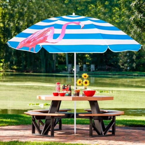 Пляжный зонт с регулируемой высотой и наклоном Springos BU0013, 180 см, с принтом «розовый фламинго»