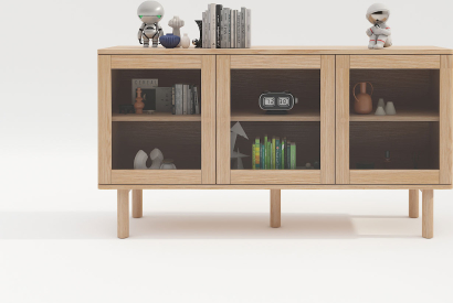 Sideboard HANSEN 140x40xH75cm, oak. Material: melamine board with an oak finish. The legs are made of solid wood.