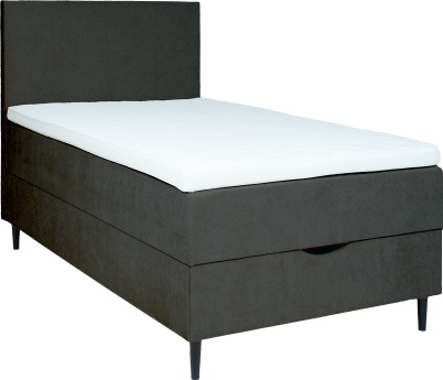 The top mattress is made of foam and its thickness is 7cm. Under it is a mattress with pocket suspension. 210 springs/m2, spring height 13cm. Mattress stiffness: medium. The bed frame is made of wood, chipboard and hardboard. There is spacious storage space under the bed. Bed legs are made of wood, 14cm high. The headboard is as wide as the bed, its thickness is 7cm, height 105cm. Connecting elements have been added. The bed is covered with fabric, 30 000 Martindale. The height of the bed is 70cm. The dimensions of the product are 91x208xH119cm. The product is made in EU. | ||||||||