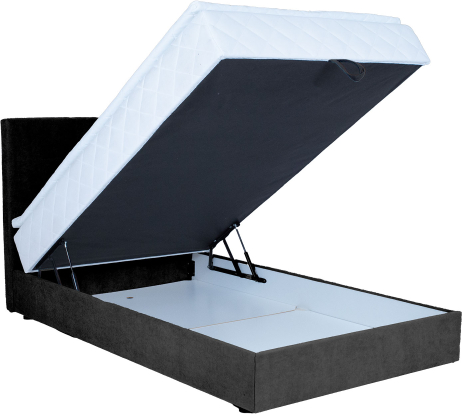 The bed has a mattress with pocket suspension, 210 springs/m2. The height of the springs is 13cm. The springs are covered with 23kg/m3 foam, which is 2cm thick. Mattress stiffness: firm. The top mattress is made of 23kg/m3 foam and covered with 200g/m2 polyester wadding. Under the bed is a spacious storage box. The box is made of solid wood and laminated chipboard. The sides are covered with foam. The bed frame is made of solid wood. The frame is covered with fabric, 30 000 Martindale. The set includes a headboard which is the same width as the bed. The headboard is 7cm thick. Connecting elements are included to attach the headboard to the bed. The bed has four legs made of plastic. The legs are black. The height of the legs is 2,5cm, height of the top mattress is 4cm, height of the mattress is 16cm. The height of the sleeping surface is 52cm. The dimensions of the product are 123x210xH114,5cm. The product is made in EU. | ||||||||