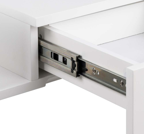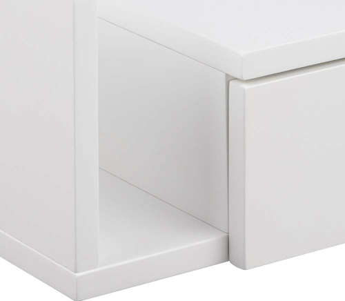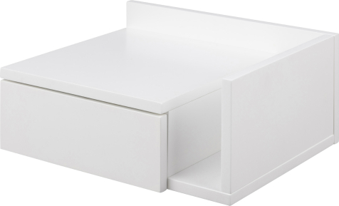 | The ideal option for any bedroom if you are into minimalistic, sleek look. With clean lines and a white painted surface, this bedside table will not take over your bedroom. Install it on the wall next to your bed at the height you prefer. There is room for magazines next to the drawer. When assembling you can decide to which side you want the open compartment. With 1 drawer you have room for books, glasses and anything else you need. Reversible drawer with a compartment on one side. Integrated handle for a clean look. CARE: Painted surfaces are low maintenance. Any spills must be instantly removed with a cloth wrung in mild soapy water and make sure to wipe dry along the grains of the wood. Placemats and coasters help to prevent any surface damage. | ||||||||