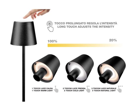 Сенсорное управление освещением: активируйте и переключайтесь между теплым, холодным или естественным светом простым прикосновением. Регулируемая яркость: удерживайте кнопку питания, чтобы настроить интенсивность света. Водонепроницаемая конструкция: подходит для использования как в помещении, так и на открытом воздухе. Универсальный адаптер для бутылок: в комплект входит адаптер диаметром 33 мм, позволяющий закрепить лампу на любимой бутылке для создания уникальной настольной установки. Зарядка через USB: в комплект входит удобный USB-кабель для зарядки.
