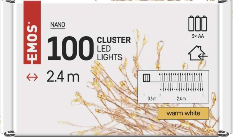Emos 100LED NANO CLUSTER BO 2.9m AA timer