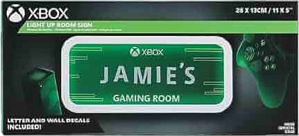 Приветствуйте своих друзей-геймеров в вашем игровом зале с помощью этой светящейся таблички Xbox Room. Пластиковая табличка размером 28 см (11 дюймов) на 13 см (5 дюймов) имеет светодиодную окантовку, что делает её заметной на фоне любой двери. Используйте прилагаемые буквы и настенные наклейки, чтобы персонализировать табличку и пространство вокруг неё. Для питания световой функции таблички используются три батарейки типа AAA (не входят в комплект). Светящаяся табличка Xbox Room станет отличным дополнением к интерьеру вашего дома.
