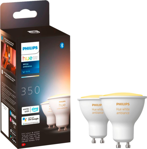 Philips HUE White Ambiance GU10 + Bridge, LED lamp twin pack, replaces 35 watts, incl. Hue Bridge
