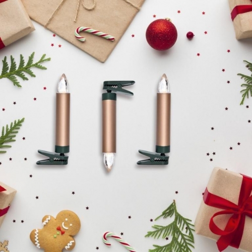 Огни похожи по форме на классические свечи, установленные на елках, которые создают более уникальную атмосферу, чем традиционные светодиодные светильники. Лампы оснащены энергосберегающим, безопасным для зрения и окружения, светодиодным освещением. Более того, каждая лампа имеет функциональный зажим, который защищает ее монтажное положение.