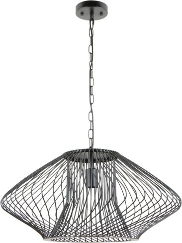 Besk griestu lampa ir mūsdienīgs industriālā stila apgaismojuma risinājums ar izteiksmīgu melnu metāla sieta abažūru. Lampa izceļas ar savu neparasto formu un atvērto konstrukciju, kas rada interesantu gaismas un ēnu spēli telpā. Matēti melna virsma piešķir lampai elegantu un profesionālu izskatu, kas lieliski papildinās modernos, industriālos vai minimālistiskos interjera risinājumus. Ar 1.2 metru garu kabeli lampa nodrošina elastību izvietojumā un ir piemērota uzstādīšanai virs ēdamgalda, virtuves salas, darba vietas vai kā centrālais apgaismojums dzīvojamā istabā vai birojā. Tehniskie dati: