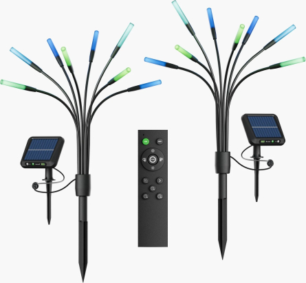 Special features 8 LED Bulbs per Solar Garden Light; 8 Solid RGB Colours & 11 Animated Multicolor Scenes; Charge via Solar Panel or USB-C; 4/6/8 Hour Auto-Off Timers