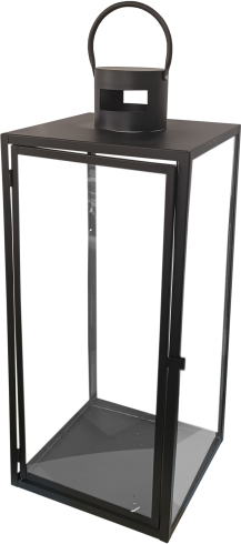 | Melna vienkārša dizaina laterna. Laternu var pakārt uz turētāja vai novietot uz līdzenas virsmas. Tā atveras no sāniem, tas atvieglo sveces nomaiņu. Materiāls - metāls, stikls. Izmērs (G x P x A) 28 x 28 x 68 cm. |