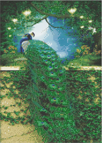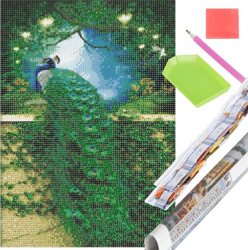 | Материал: акрил Размеры: 30x40 см. Цвет: многоцветный Набор содержит: 1 прочный холст с напечатанным изображением павлина и индексом, обозначающим буквы цвета и цвета цифрами, определяющими цвет бриллианта. 1 розовый аппликатор (длина 12,5 см, диаметр 0,7 см) для захвата и приклеивания бриллиантов 1 поднос с зелеными бриллиантами (длина 9 см, ширина 5 см) 1 губка для сухого клея (размеры: примерно 2х2 см) 2 гирлянды для сумок с пронумерованными бриллиантами - всего 23 сумки/цвета 1x руководство пользователя |