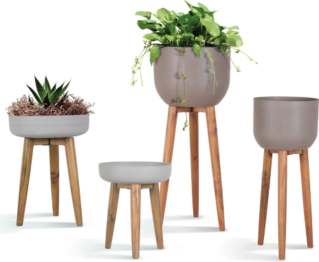 Кашпо SANDSTONE на деревянных ножках D36,5xH43см, серый