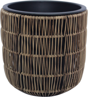 Кашпо WICKER D27xH28см, светло-коричневый. Металлический каркас кашпо покрыт пластиковым плетением. Размеры пластикового внутреннего горшка D23xH23см. Внутренний горшок без отверстия.
