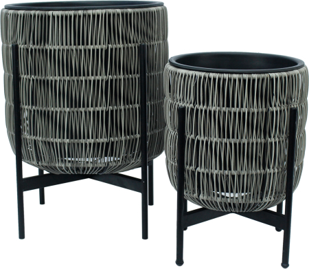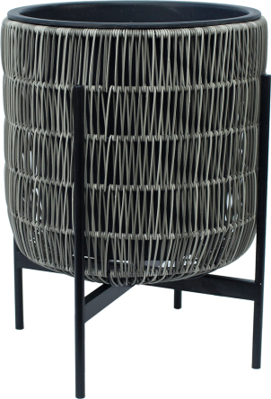 | Кашпо WICKER с подставкой 38x38xH49см, серый. Металлический каркас кашпо обтянут пластиковым плетением. Размеры кашпо D36xH36см. Размеры пластикового внутреннего горшка D30xH30см. Внутренний горшок без отверстия. В комплект входит базовая рама из черного металла. | ||||||||