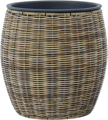 Planter WICKER D30xH30cm, light brown. The metal frame of the planter is covered with plastic wicker. The dimensions of the plastic inner pot are D23xH23cm. The inner pot is without a hole.