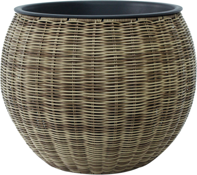Planter WICKER D40xH32cm, light brown. The metal frame of the planter is covered with plastic wicker. The dimensions of the plastic inner pot are D30xH27cm. The inner pot is without a hole.