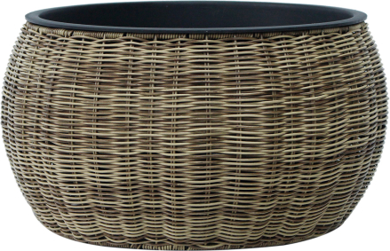 Planter WICKER D48xH26cm, light brown. The metal frame of the planter is covered with plastic wicker. The dimensions of the plastic inner pot are D38xH19cm. The inner pot is without a hole.