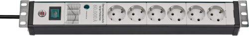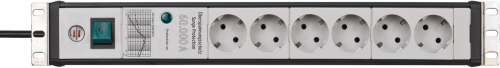 Brennenstuhl Premium-Line 6-way power strip, 19" format, black/light grey, 3 meters, 60,000A surge protection
