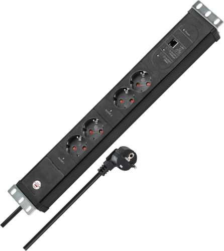 Brennenstuhl Premium-Web-Line V3 Internet power strip 19" 4-way, 2 Main + 2 Follow black, 1.5U, 3 meter cable, Main-Follow function, LAN connection