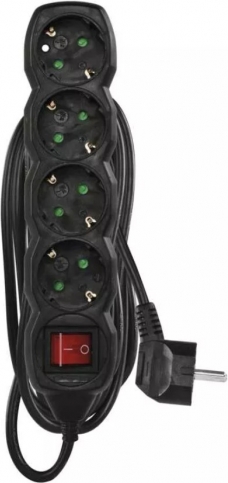 Emos Удлинитель SCHUKO с выключателем – 4 розетки, 5,0 м, черный, 1,5 мм²