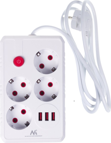 Maclean power strip, 4-socket extension cable + 3xUSB, 110-240V AC 50/60Hz, 2.1A max 2500W, 1.5m, white, MCE392 W