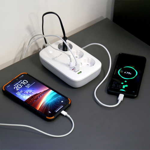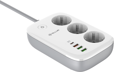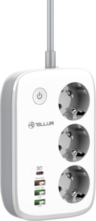Tellur Smart WiFi Power Strip 3 Outlets, PD30W, QC18W, 2xUSB 2.4A 2500W 10A 2m