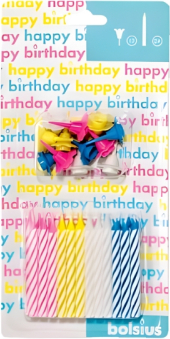 Bolsius Набор из 12 разноцветных свечей для торта с подсвечниками.