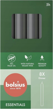 Bolsius Настольные свечи, 8 шт., в коробке, 170/20 мм, серые.
