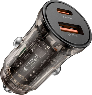 Автомобильное зарядное устройство Tech-Protect CC01 30W 2-Port USB-A | USB-C | Черный