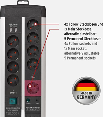Brennenstuhl Premium-Protect-Line, 11-way duo, power strip (black/silver, 120,000A surge protection, 3 meters)
