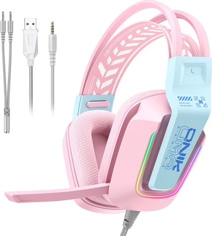 ONIKUMA X13 gaming headphones (pink)ONIKUMA X13 is a gaming headphone designed for gamers who want to combine distinctive design with functionality and solid sound. The large 50mm drivers provide clear, dynamic sound, and the striking RGB backlighting gives the gaming station a modernistic touch. This is a piece of equipment that looks great on the desk and, above all, realistically enhances the comfort of gameplay and communication with the team.
